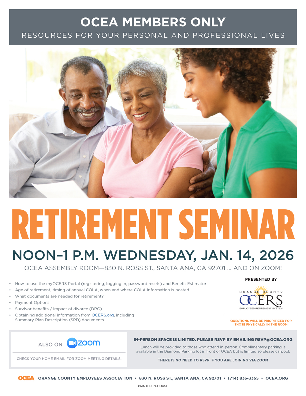 January 14, 2026 | Noon–1 p.m. | OCEA Assembly Room, 830 N. Ross St., Santa Ana, CA 92701
